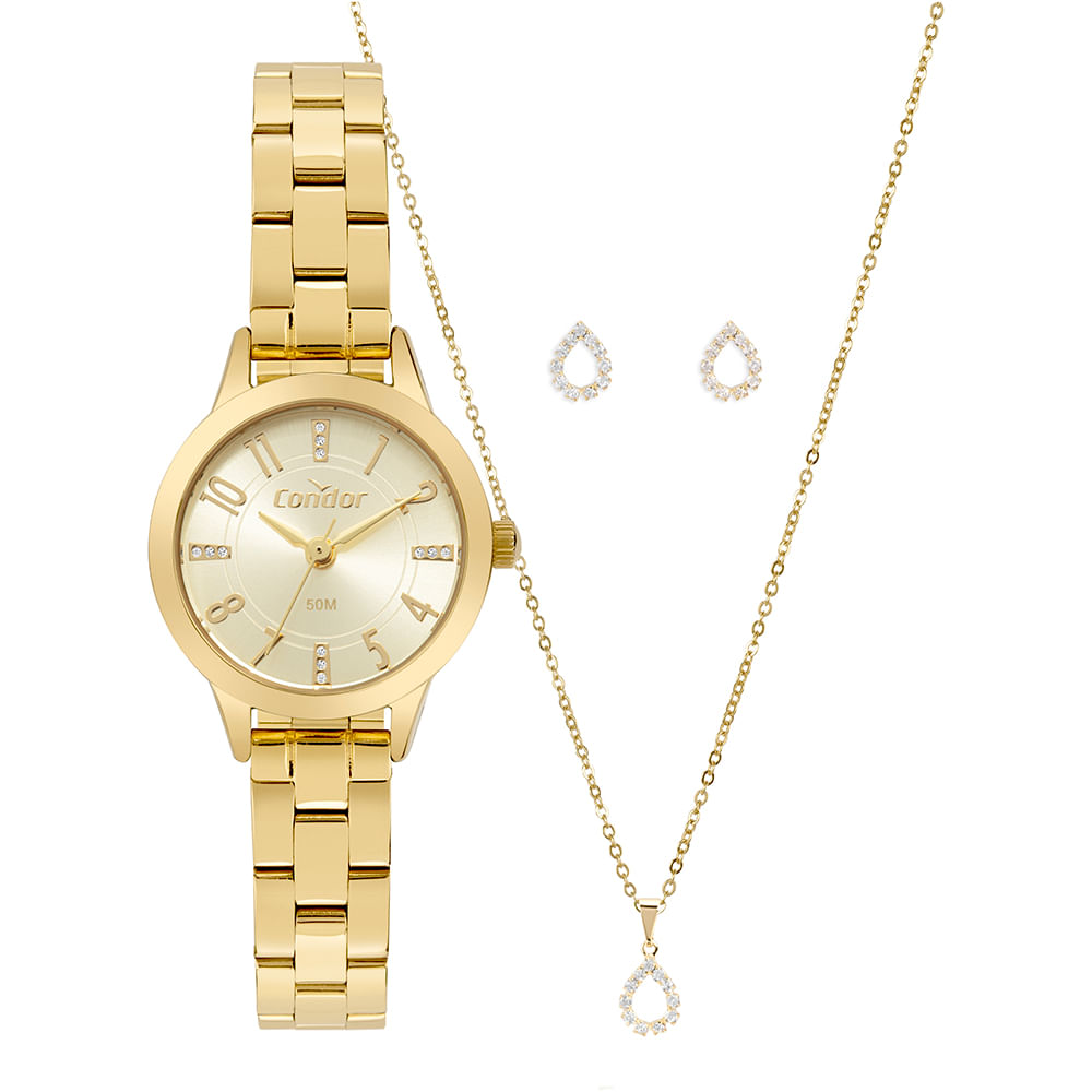 Kit Relógio Condor Feminino Mini Dourado - CO2035NWM/K4K