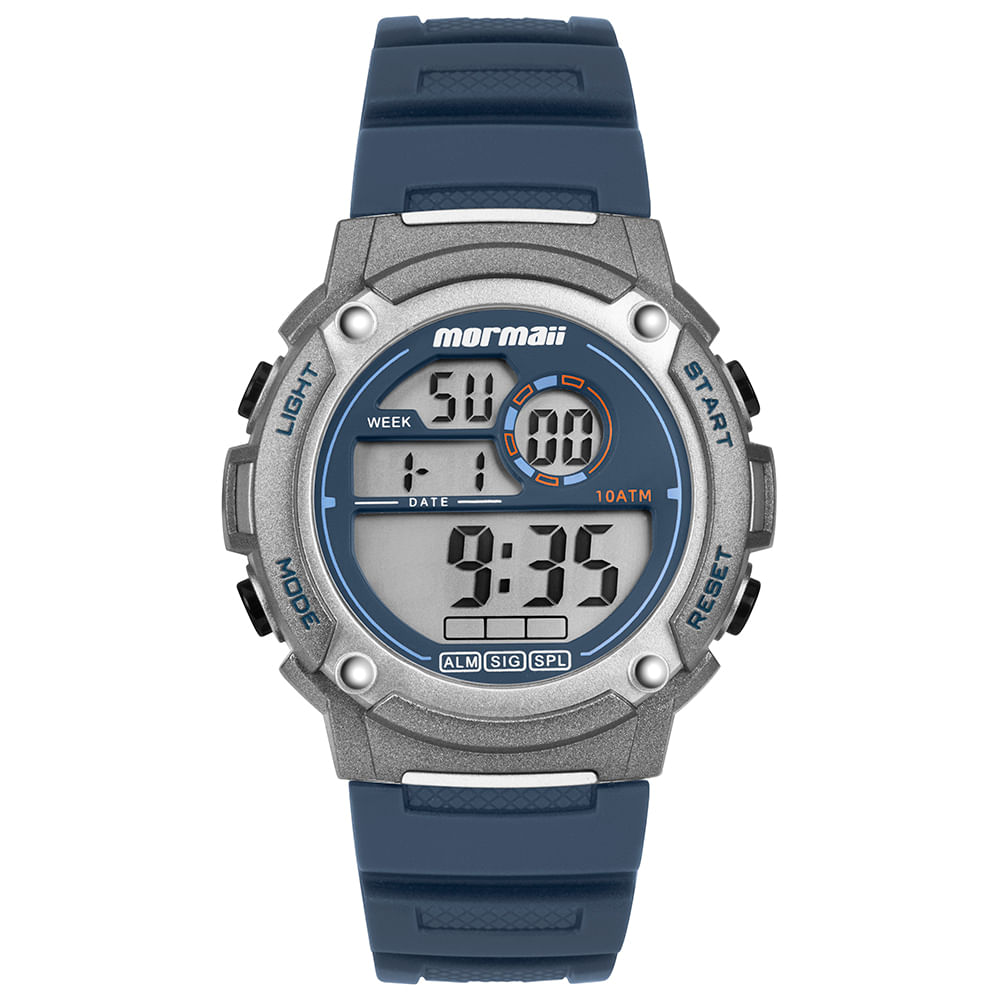 Relógio Wave possui caixa de polímero na cor cinza, coroa na cor prata e mostrador com display de LCD positivo, apresentando também indicador diário, mensal e semanal, temporizador, alarme, cronômetro e luz noturna para auxílio em ambientes escuros. Com pulseira de poliuretano na cor azul e resistência à água de 100 metros, é o relógio ideal para te acompanhar em qualquer momento do seu dia.
