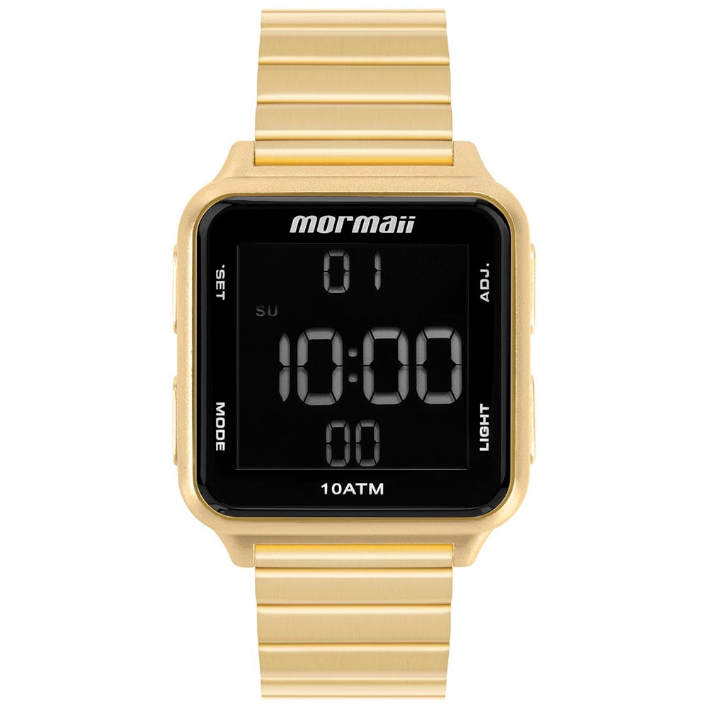 A linha Digi combina caixa em polímero com pulseira de aço inoxidável em elo único, trazendo estilo e resistência em um só modelo. Com display de LCD positivo, oferece funções como indicador de dia, mês e semana, alarme, cronômetro, aviso sonoro de hora em hora e luz noturna para auxiliar em ambientes escuros. Disponível na cor dourado, o relógio garante estilo único ao pulso, e apresenta resistência à água de 100 metros, capaz de tornar experiências incríveis.
