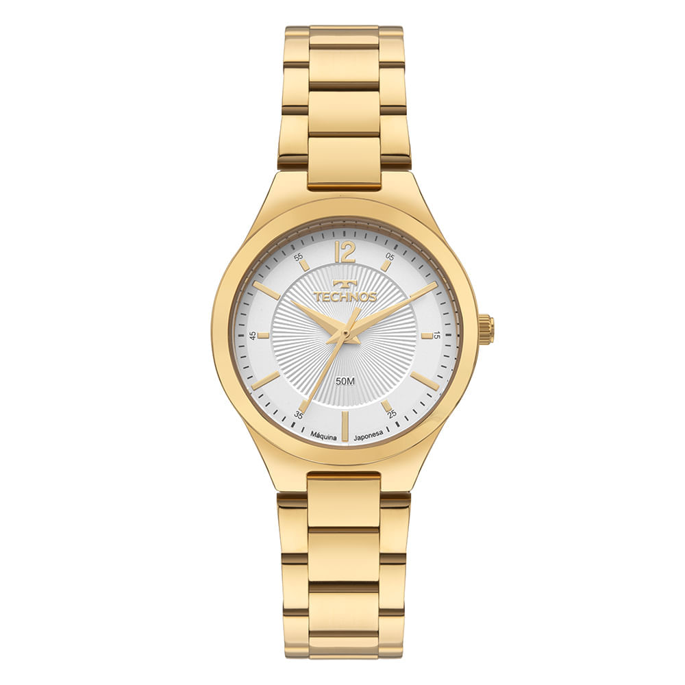 O Technos Boutique é a união perfeita entre design clássico e funcionalidade. A linha apresenta modelos com aplicação de pedras delicadas nos marcadores de hora ou com mostrador prata texturizado e numeração arábica 12h, que garante fácil leitura e reforça a sofisticação da peça. Disponível no banho dourado, caixa de 30mm em aço inoxidável, pulseira de 3 links e resistência à água de até 50 metros.