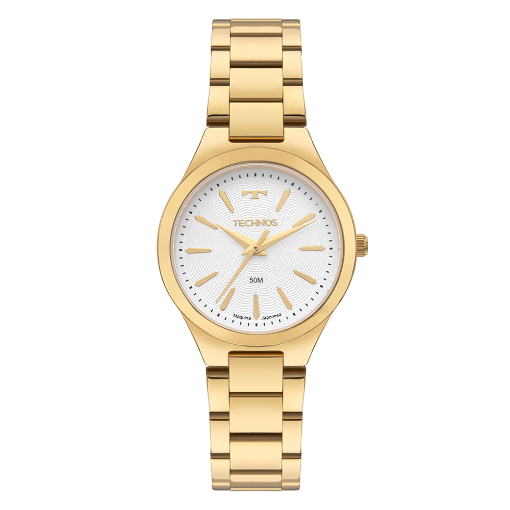 O Technos Boutique é a união perfeita entre design clássico e funcionalidade. A linha apresenta modelos com aplicação de pedras delicadas nos marcadores de hora com indexes e mostrador prata. Disponível nos banhos prata e dourado, caixa de 30mm em aço inoxidável, pulseira de 3 links e resistência à água de até 50 metros.