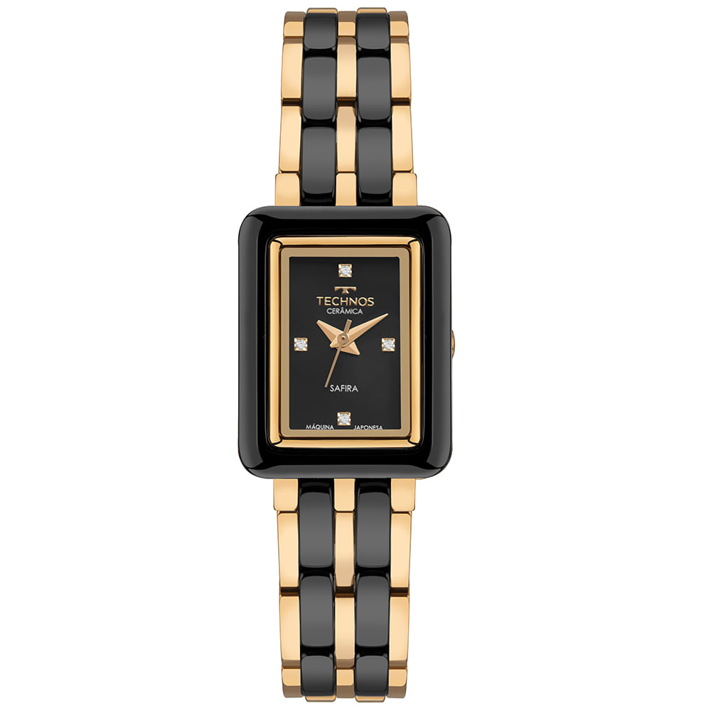 de cerâmica garante robustez e sofisticação, enquanto o contraste da cerâmica preta sobre o aço inoxidável em banho dourado confere modernidade e requinte.