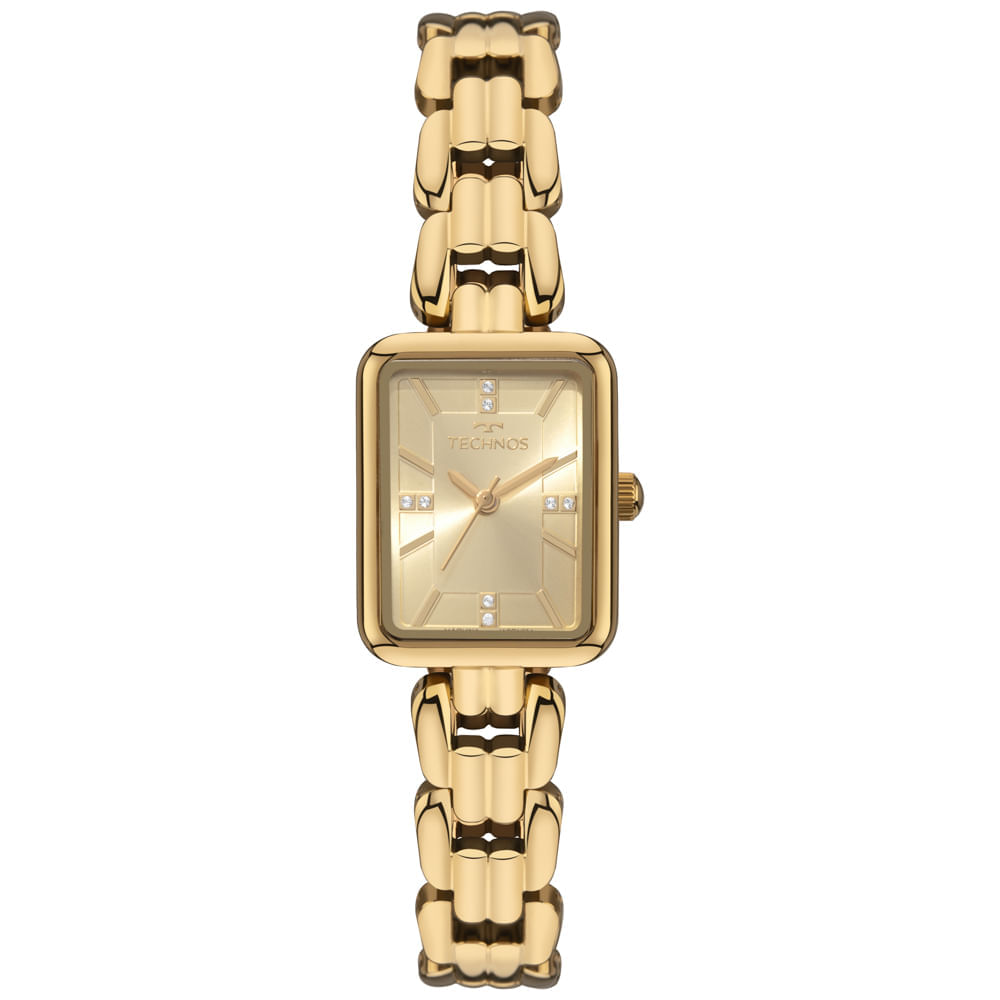 cores prata ou champanhe se destaca pelo trabalho em relevo, que adiciona textura e refinamento ao design. Os marcadores de hora com aplicação de pedras